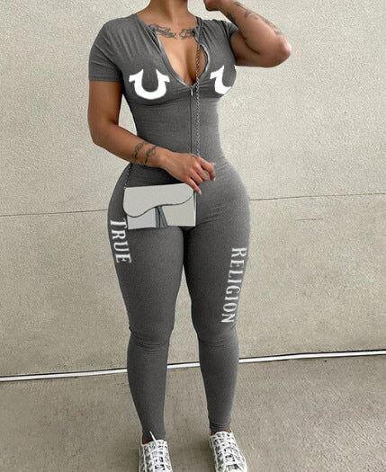 European And American Fashion One-piece Women's Long-sleeved Letter Printed Trousers
