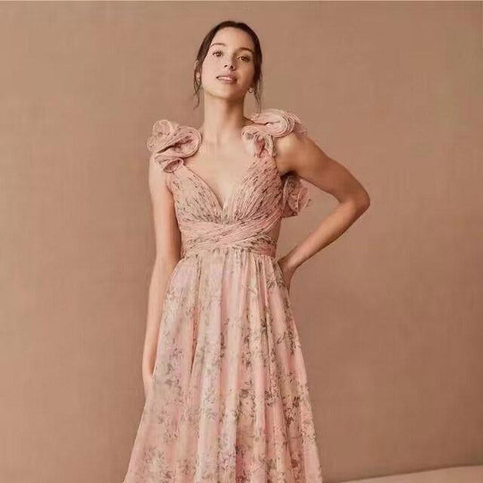 Elegant Autumn Print V-Neck Dres...