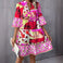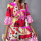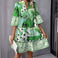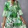 • Pleated Printed Flared Sleeve Dress | Ruffled Hem Summer Fashion