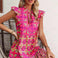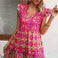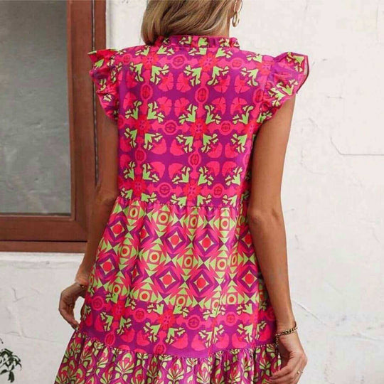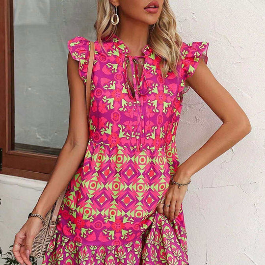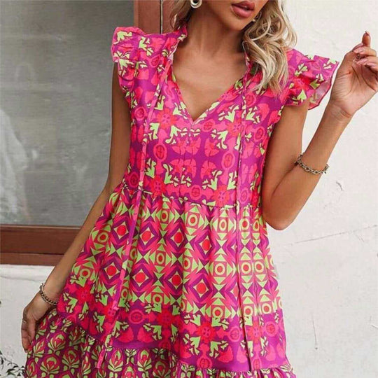 • V-Neck Printed Sleeveless Dress | High-Saturation Lace-Up Straight Dress