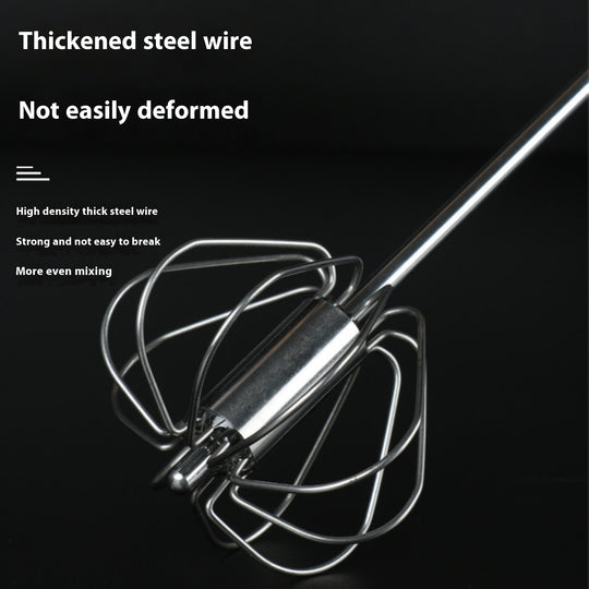 • Push-Spin Semi-Automatic Whisk | Rotating Stainless Steel Egg Beater