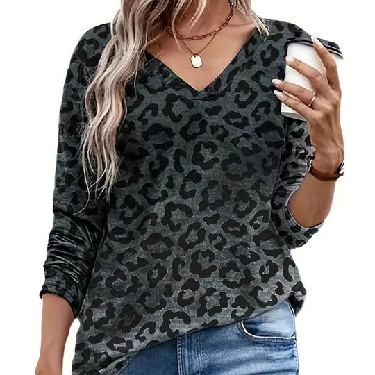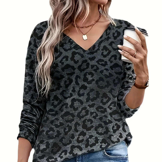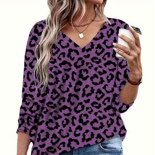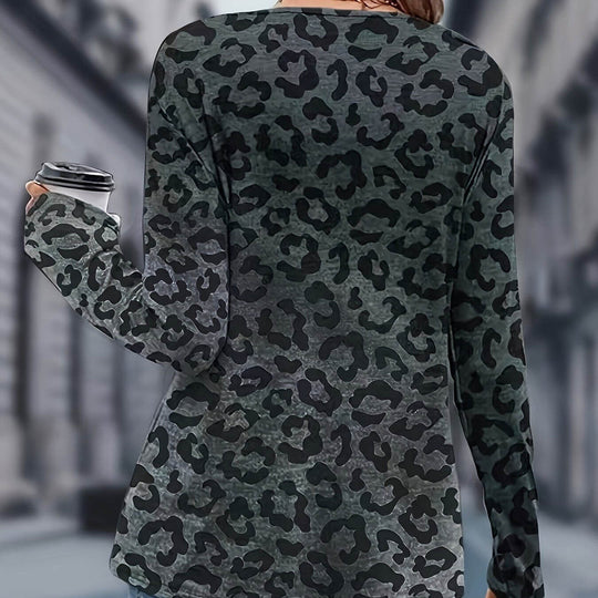 • Retro Leopard Print Long Sleeve Top | Casual Crew-Neck Patterned Blouse