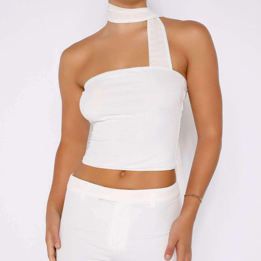 Luna Cutout Strap Crop Top | Sexy Ribbed Streetwear Vest with Chest Detail
