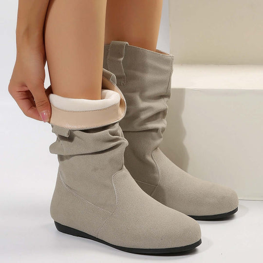 • Round Toe Flat Boots Fashion Solid Color Suede Mid-calf Boot Winter Warm Shoes For Women