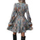 Robe imprimée décontractée à manches longues et col en V | Robe midi structurée trapèze pour tous les jours