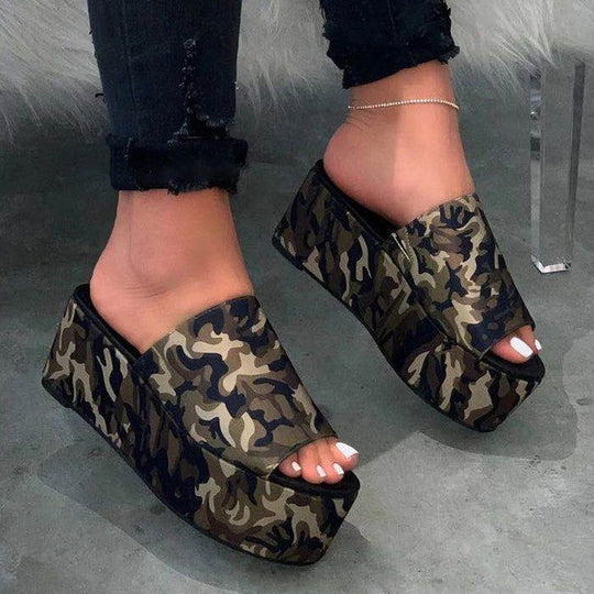 Summer Platform Sandals Leopard Print Women Sandal Flat Shoes Casual Women Peep Toe Black Platform Sandals