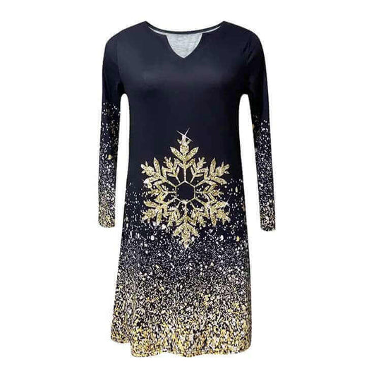 Elegante jurk met V-hals en herfstprint | Tempe...