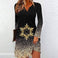 Elegant Autumn Print V-Neck Dress | High-Saturation Long-Sleeve Temperament Maxi