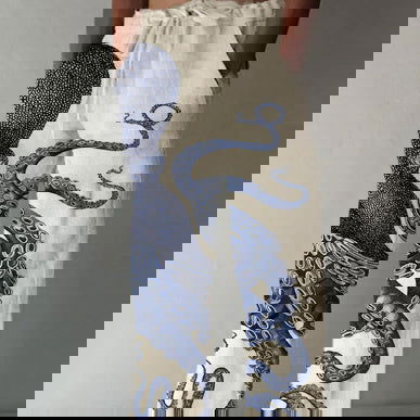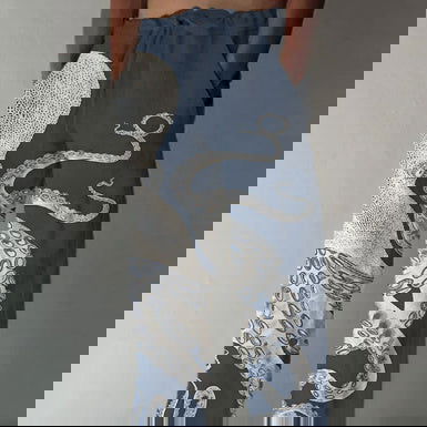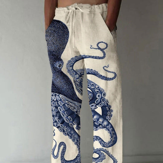Men's Loose Casual Straight-leg 3D Printed High Waist Wide Leg Pants