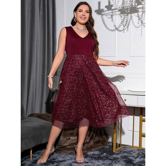• Temperamentvolle jurk met V-hals en stippen | Luxe, nauwsluitende maxi-jurk
