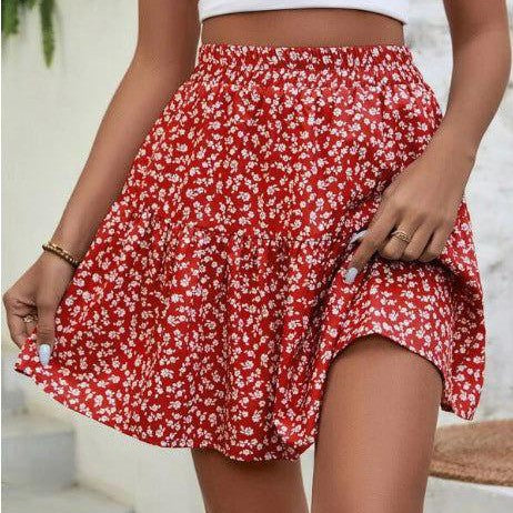 • A- Line Short High Waist Floral Frill Hem Skirt