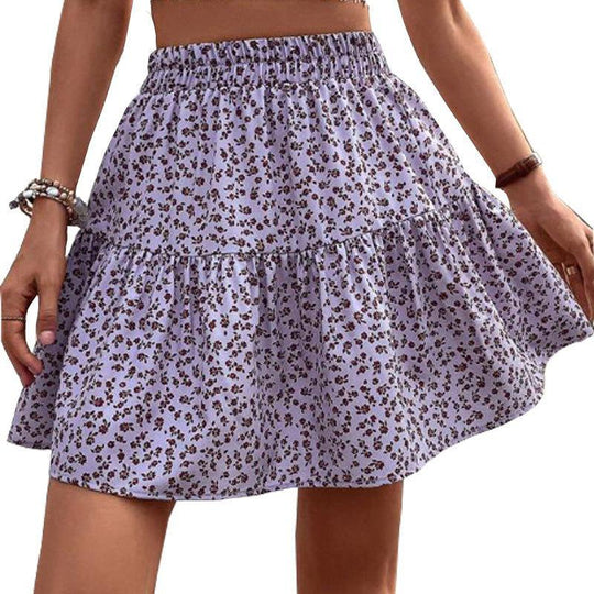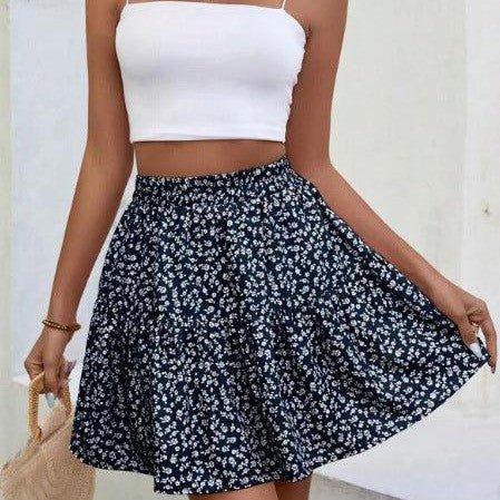 A- Line Short High Waist Floral Frill Hem Skirt