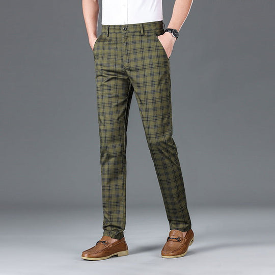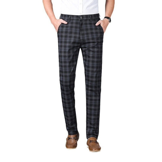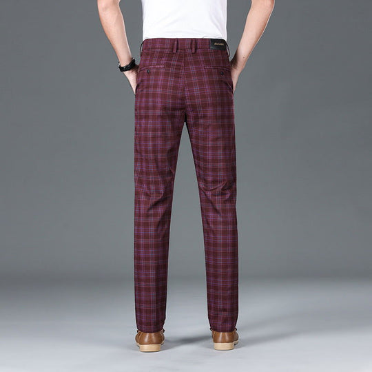 • Checkered Elastic Straight Leg Casual Pants