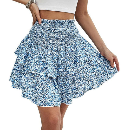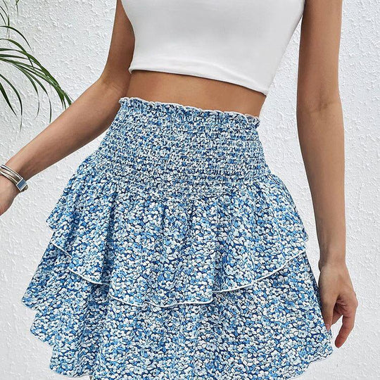 • European And American Summer Smocking Slim Fit Floral Short Skirt