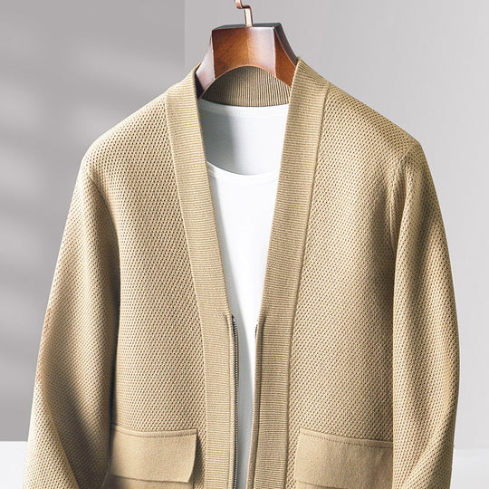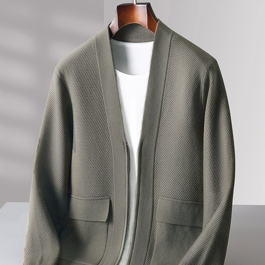 • Men’s Knitted Wool Cardigan | Zippered Cashmere-Blend Thermal Hub
