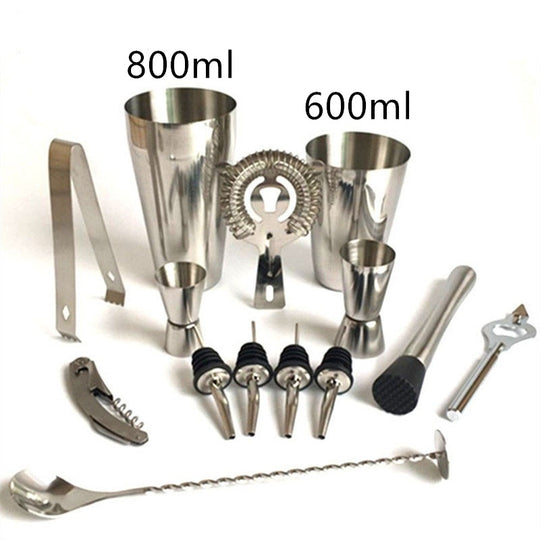 800 600 set: All stainless steel Boston cocktail shaker with 800/600ML (13-piece set)