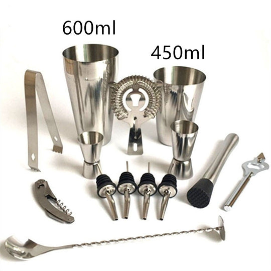 600 450 set: All stainless steel Boston cocktail shaker with 600/450ML (13-piece set)