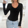 Essential U-Neck Long Sleeve Top | Slim-Fit Second-Skin Ribbed Basic
