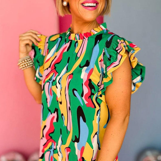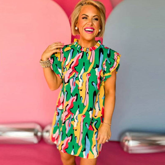 Ruffle-Sleeve Axis Dress | Kinetic-Fit Structural-Volume Assembly