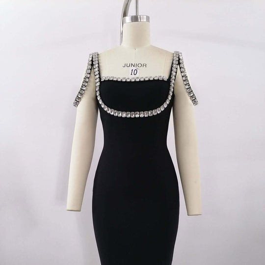 • Heavy Industry Beaded Slim-Fit Dress | High-Detail Structured Social Skirt Dress