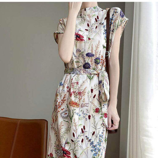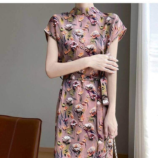 • High-Grade New Chinese Floral Dress | Structured Mandarin-Style A-Line Midi