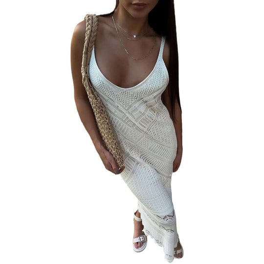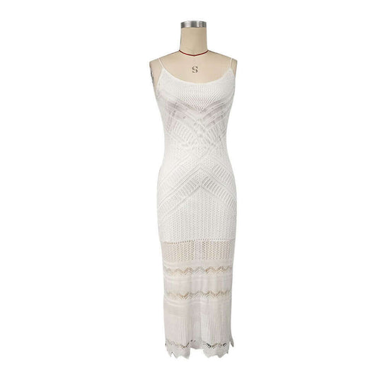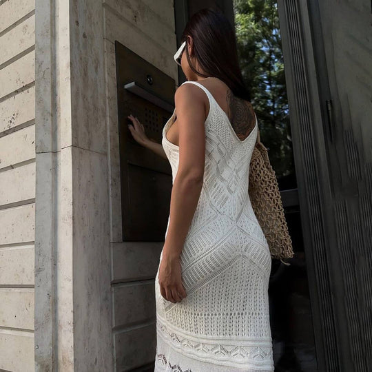 Knitted Long Body-Hugging Dress | Sleek Ribbed-Texture Full-Length Frame