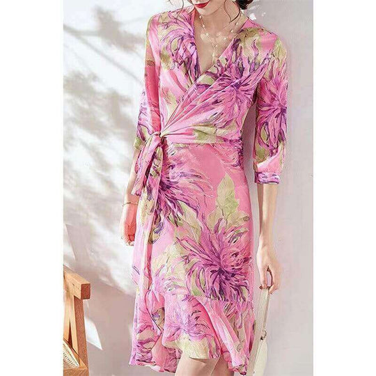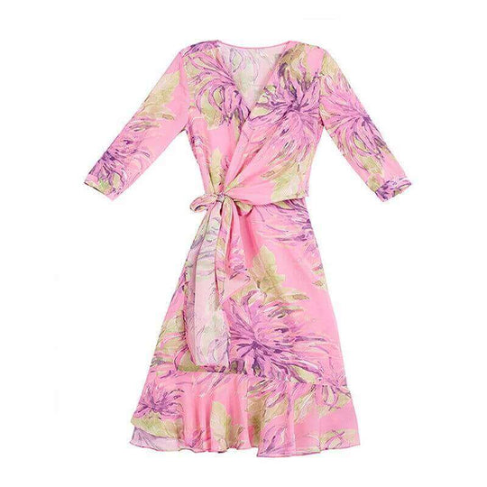 • V-Neck Bohemian Floral Dress | High-Drape A-Line Boho Summer Dress